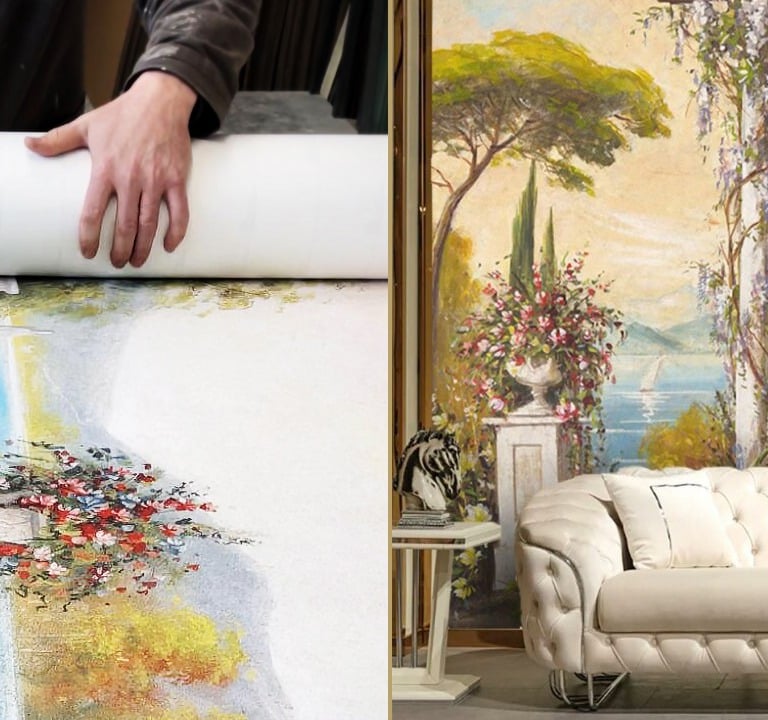 Classic and modern fresco wall art for indoor and outdoor decoration, customizable in size, style, and subject.