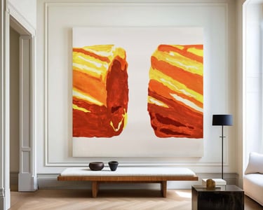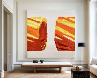 The abstract paintings in the collection are non-figurative artworks that distance themselves from the representation of objective reality, focusing instead on shapes, colors, and lines to express emotions or concepts independent of the external world. Rather than depicting recognizable objects, abstract art uses visual elements in unconventional ways that evoke an emotional or intellectual experience in the viewer.