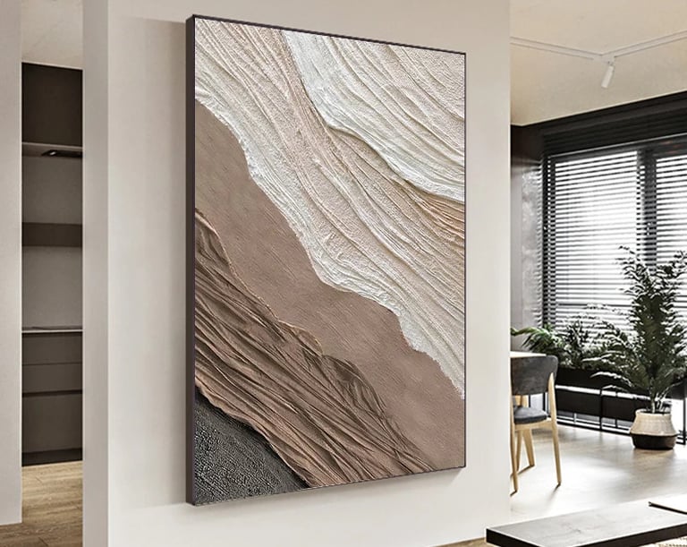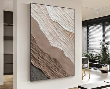 The collection of textured paintings are handmade works of art that transcend traditional two-dimensionality, adding a three-dimensional dimension through the use of materials other than simple paint, such as sand, stones, fabrics, wood, mortar, and more. The goal is to create a relief and texture on the surface of the work, breaking down the flatness and creating a more substantial and tactile aesthetic, becoming true objects of artistic design.