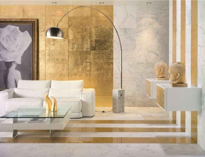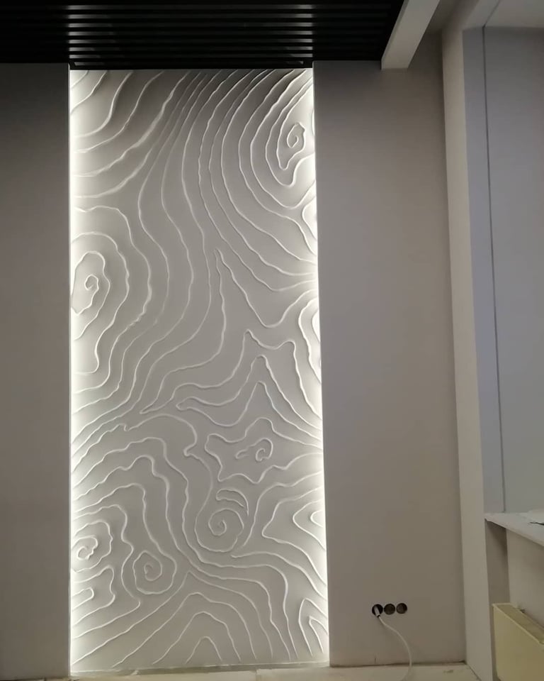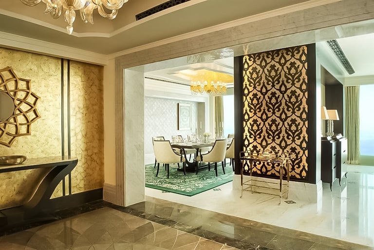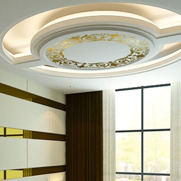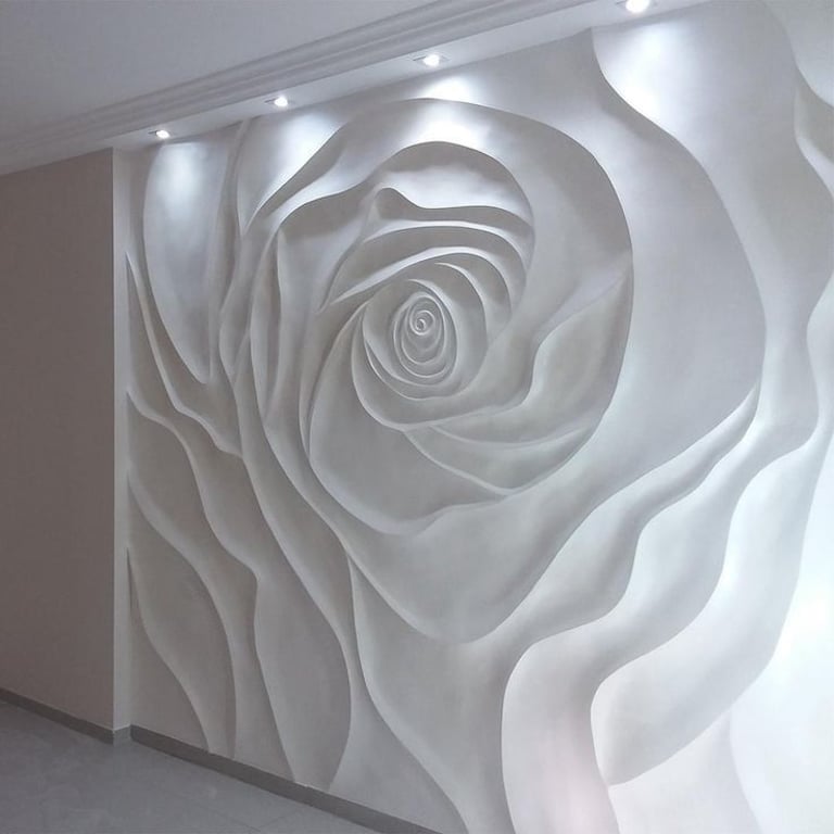 Gold, silver, and bronze leaf wall and ceiling decorations, 3D carved relief decorations, graffiti and artistic design murals.